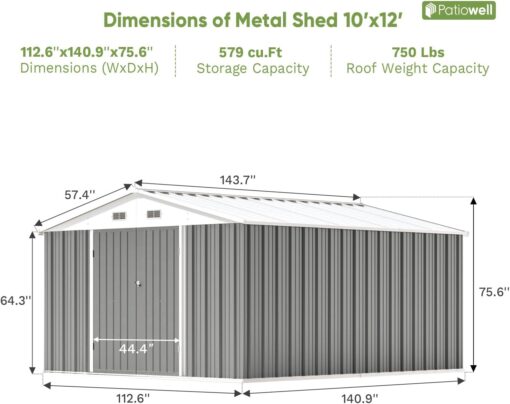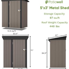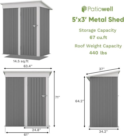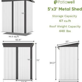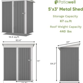 Patiowell 5′ x 3′ Metal Outdoor Storage Shed
