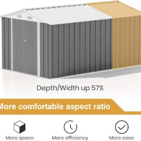 The outdoor storage shed has a sloping roof, which adds additional storage space and prevents rust caused by rainwater accumulation.