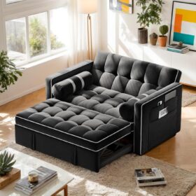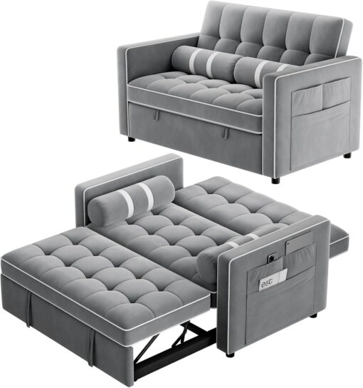 - 【HIGH-DENSITY FOAM FOR COMFORT�? This pull out couch features soft, pet-friendly velvet fabric surface combines elegance with easy maintenance for daily use.The couch bed’s high-density foam cushions with plush fillings mold to your silhouette, providing ergonomic support. Multi-layered seat construction maintains shape integrity during extended work or relaxation sessions.