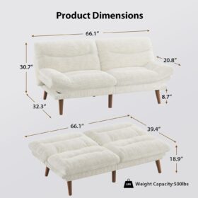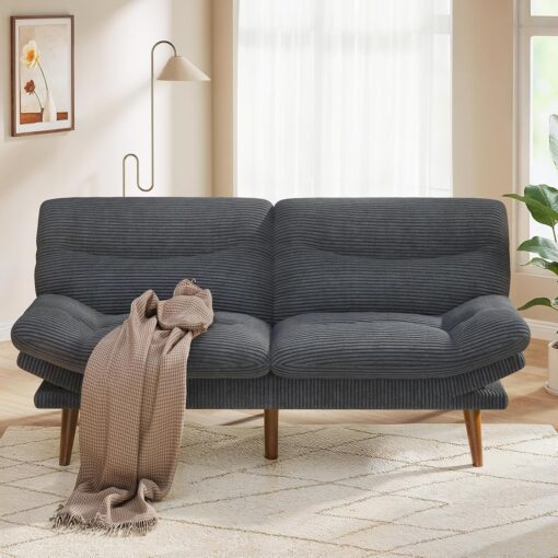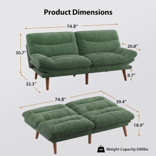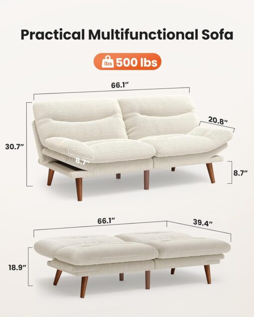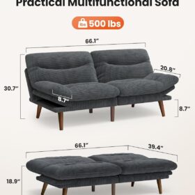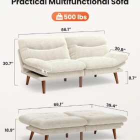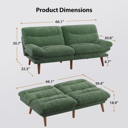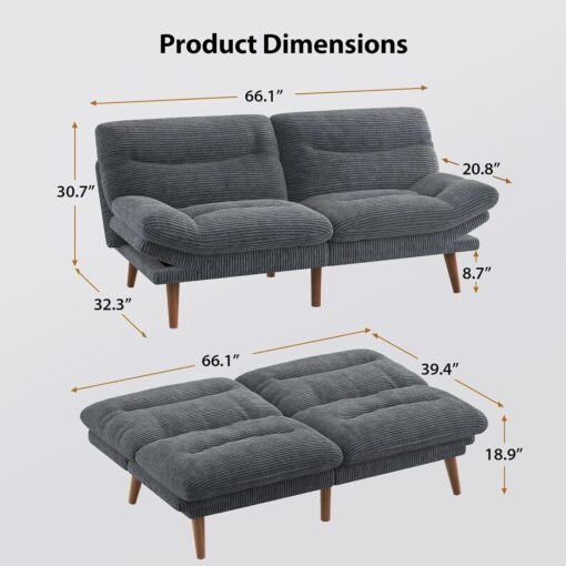 - VERSATILE SOFA BED: This corduroy futon sofa bed easily converts into a comfortable sleeper, Loveseat mode 66”X20.8”X30.7” (L*W*H),Sofa bed mode : 66.1”X39.4”X18.94”(L*W*H).perfect for small spaces, living rooms, offices, or guest rooms, offering both functionality and space-saving design.