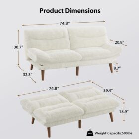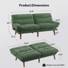 - STURDY & DURABLE CONSTRUCTION: Built with a wood frame and additional support legs, this futon sofa bed can hold up to 500 lbs, ensuring stability and durability for years to come.