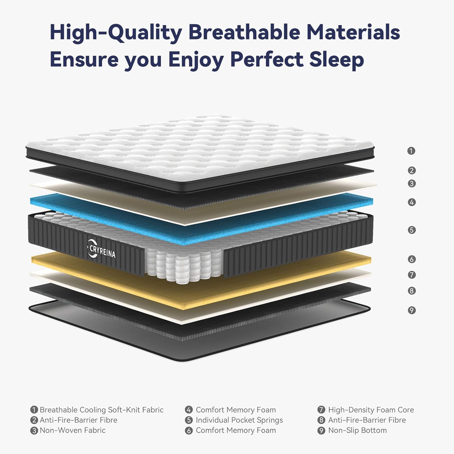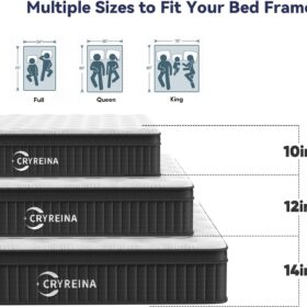 - 【CRYREINA Queen Mattress】The Hybrid Mattress Combines independent pocket springs and multiple layers of supportive memory foam. This combination ensures even weight distribution from head to toe, offering targeted support to fully relax your muscles and enjoy a restful sleep experience.