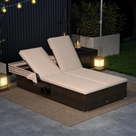 Featuring 6-position adjustable backrest and a retractable canopy, you can enjoy the conversation with shade or sunbathing time on our double chaise lounge chair. Just place your drink, snacks, phones and sunglasses on the folding side tables. Additionally, the cozy seat cushions, filled with elastic sponge, provide a plush seating experience for you and your friends. They’re easy to maintain with zippered cushion covers. And built with a solid metal frame and L-shaped aluminum legs, this outdoor loveseat sofa set can support up to 800 lbs. Hand-woven with PE rattan, the patio bed offers anti-fading and sun-protective qualities, maintaining its elegant appearance in outdoor occasions. As needed, the wicker sun lounger can blend well into your garden, backyard, poolside, deck, porch and more.
