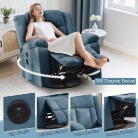 - �?60° Swivel & Rock Recliner Chair�?Korser’s recliner combines 360° smooth rotation with a gentle rocking motion, allowing you to effortlessly turn toward the TV or spin to join conversations—no need to stand up! The soothing rocking function helps you relax, while the side-pull buckle lets you recline and stretch out. The extendable footrest adds extra comfort, creating the perfect cozy spot. Its contemporary American design elevates any living space with a modern touch.
