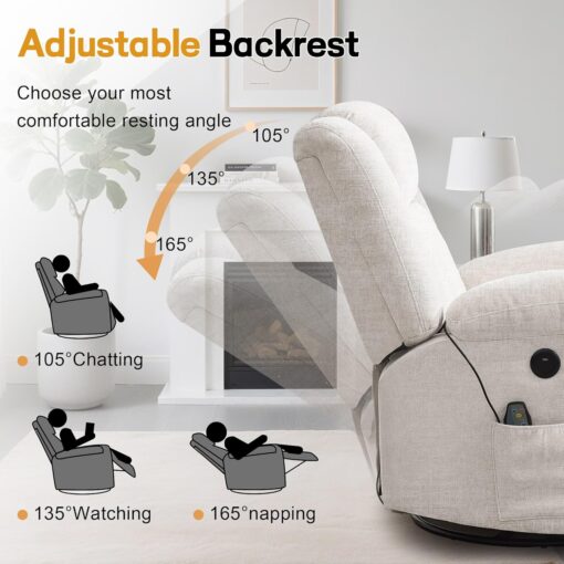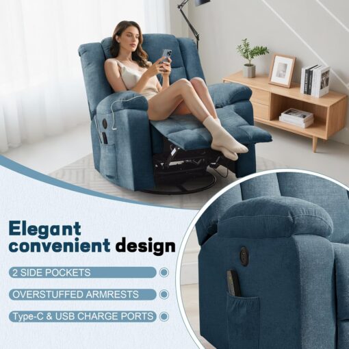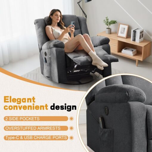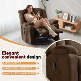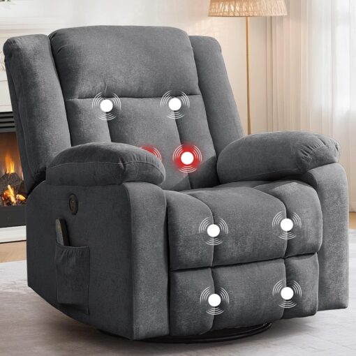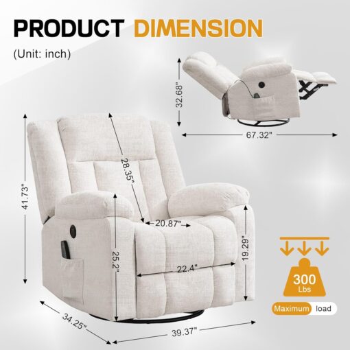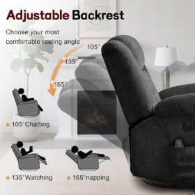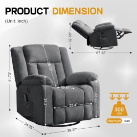 - 【Premium Comfort & Durability�?Crafted with luxurious chenille fabric, glider massage recliner delivers a plush, skin-friendly feel while remaining easy to clean—perfect for everyday use. The seat cushion is filled with high-resilience foam for optimal support and long-lasting comfort. Beneath the soft exterior, a reinforced steel frame ensures sturdy weight capacity and years of reliable use.