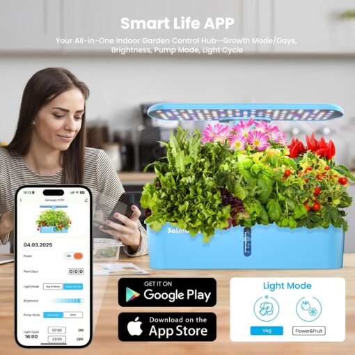 - 𝗦𝗺𝗮𝗿𝘁 𝗟𝗶𝗳𝗲 𝗔𝗽𝗽 + 𝗪𝗶-𝗙𝗶 𝗖𝗼𝗻𝗻𝗲𝗰𝘁 𝗝𝘂𝘀𝘁 𝟭 𝗠𝗶𝗻𝘂𝘁𝗲:The beginner-friendly Smart Life App connects via Wi-Fi in just 1 minute, making it ideal for home gardens. Easily monitor lighting and watering for your house garden from anywhere—no gardening experience needed!