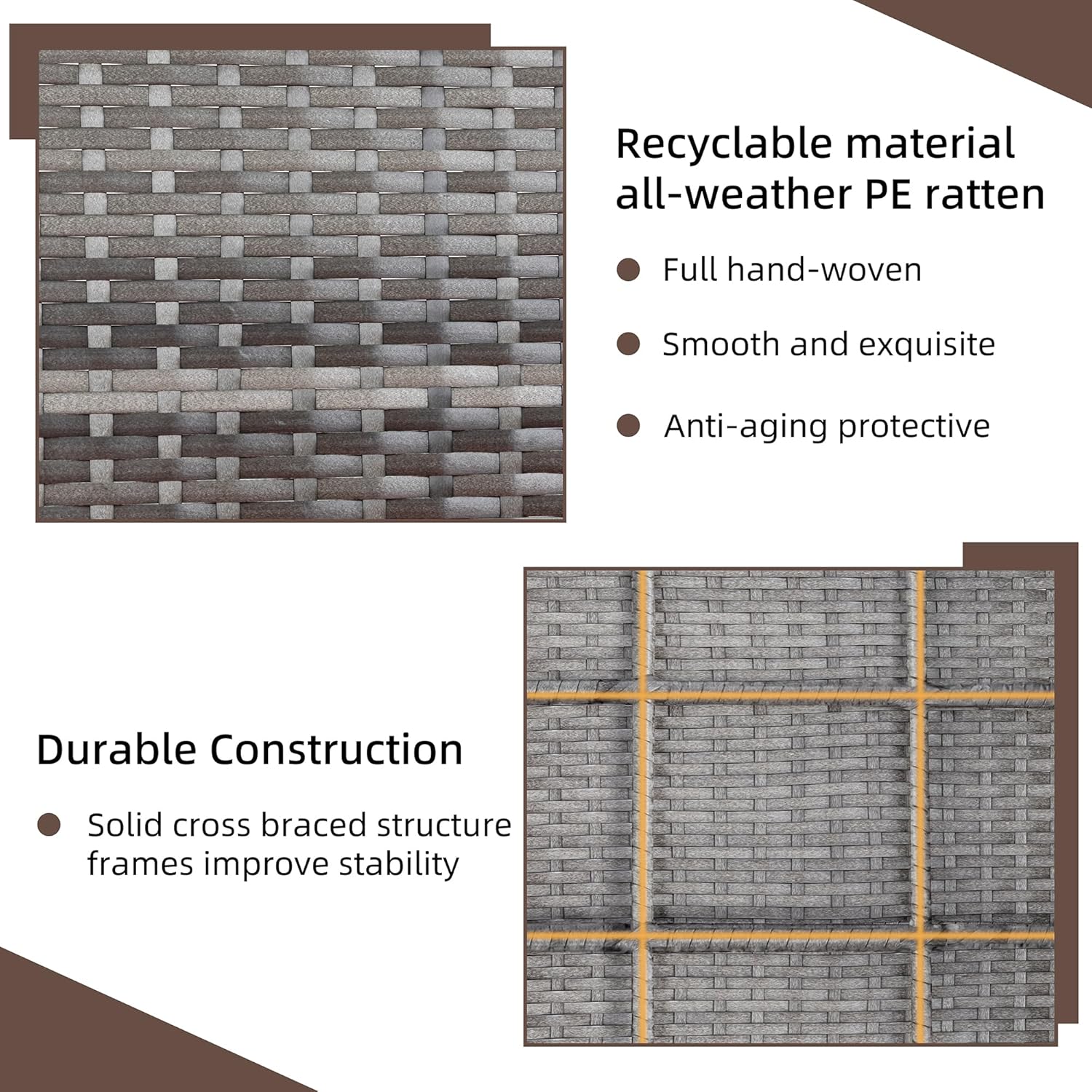 - 【PE Rattan & Solid Structure】Patio furniture made of high-quality and durable Steel Frame and hand-woven Rattan, Built to last, resistant to deformation, large load capacity. Hand-woven rattan provides both elegance and adaptability to all weather conditions.