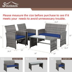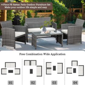- 【Easy to Assemble】This 4-piece patio furniture set comes with instructions, all hardware, and necessary tools. If you connect all of the pieces before tightening the screws, it should come together pretty easily.