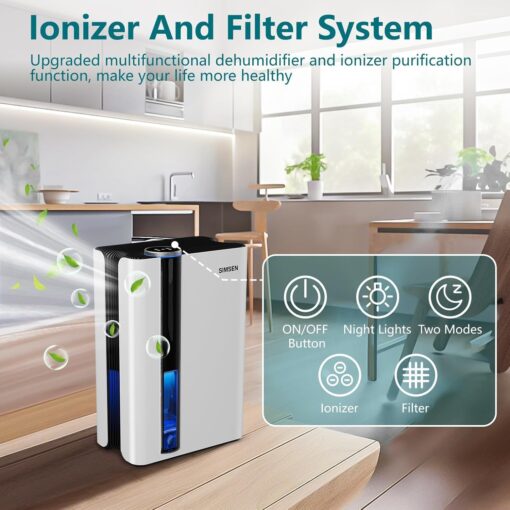 - 【Detachable Filter & Ionizer�?SIMSEN upgraded dehumidifier adds filter and Ionizer, It removes moisture while small particles from the air, keep your dehumidifier working efficiently. the Ionizer can make the air emitted by the dehumidifier more fresh, very suitable for use in bathroom and kitchen. Let you enjoy fresher air anytime, anywhere.