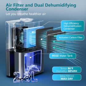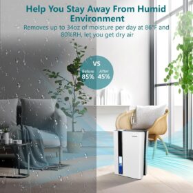 - 【Portable & Compact Design�?Size: 7.05″D x 10.24″W x 15.31″H. The dehumidifier with ergonomic recessed handles, Easy to place anywhere. Lightweight and portable, this dehumidifiers for home can be positioned in various spaces such as the bedroom, bathroom, closet, kitchen, cabinet, garage, RV, and other occcsions.