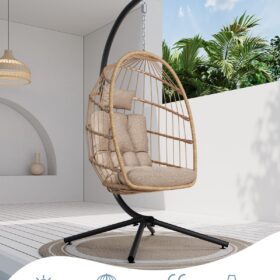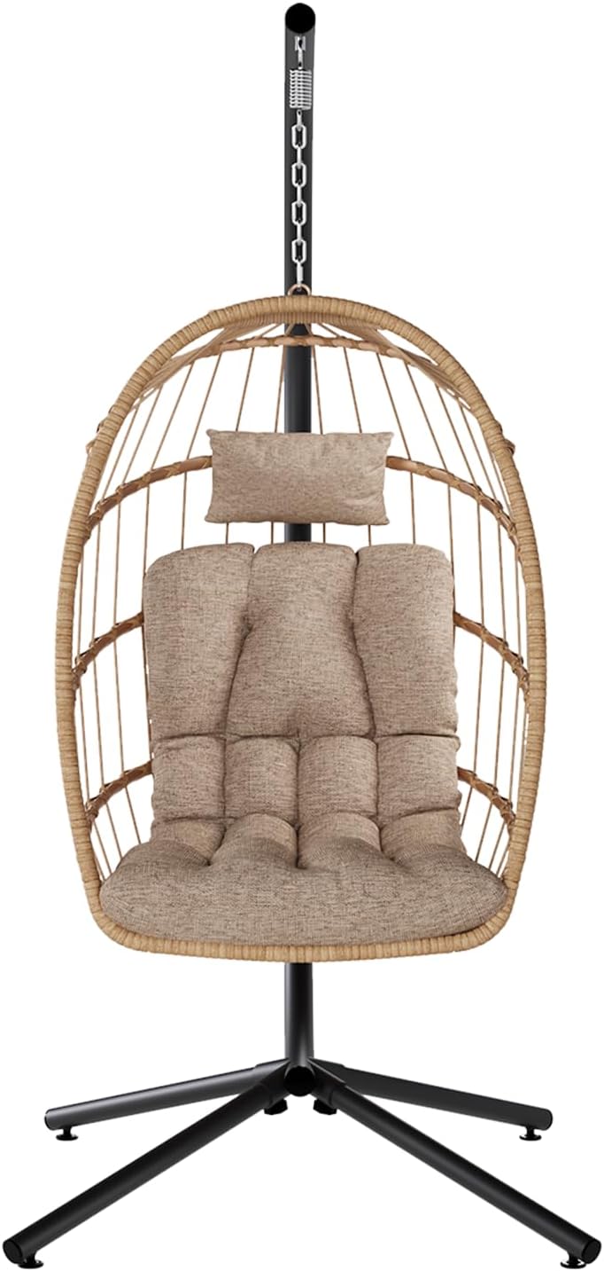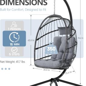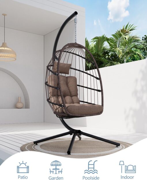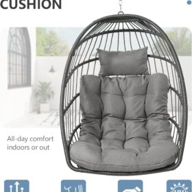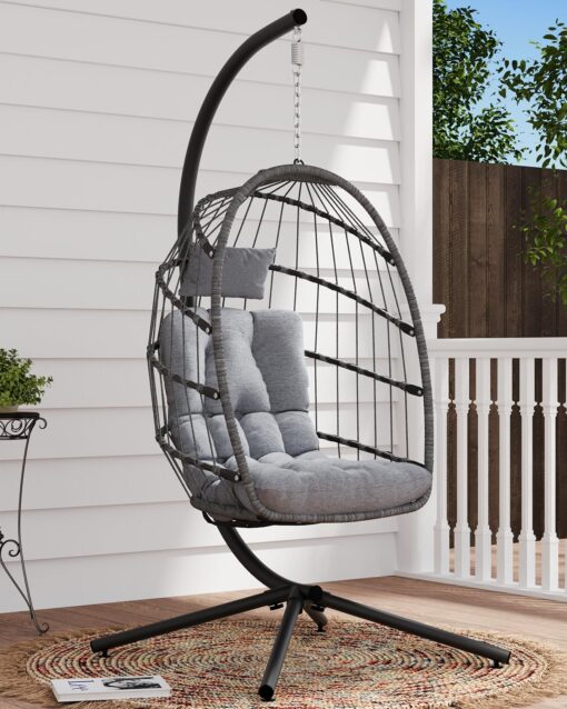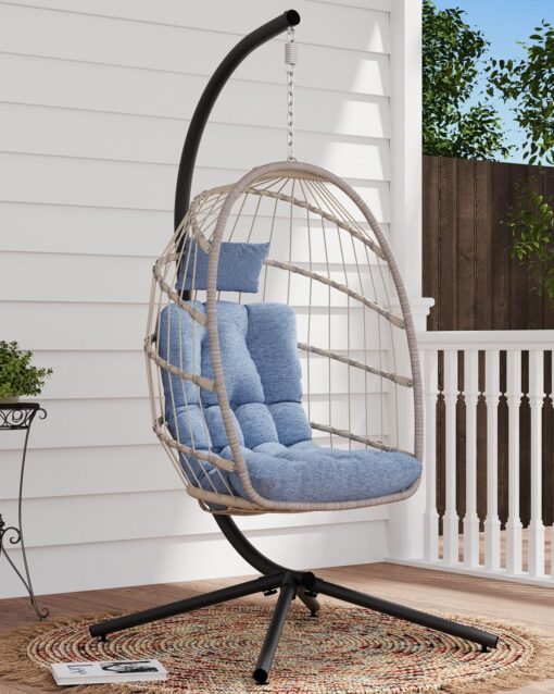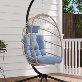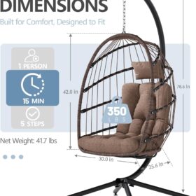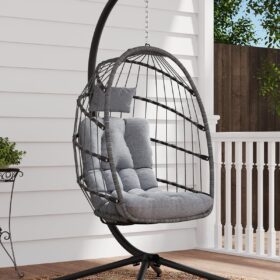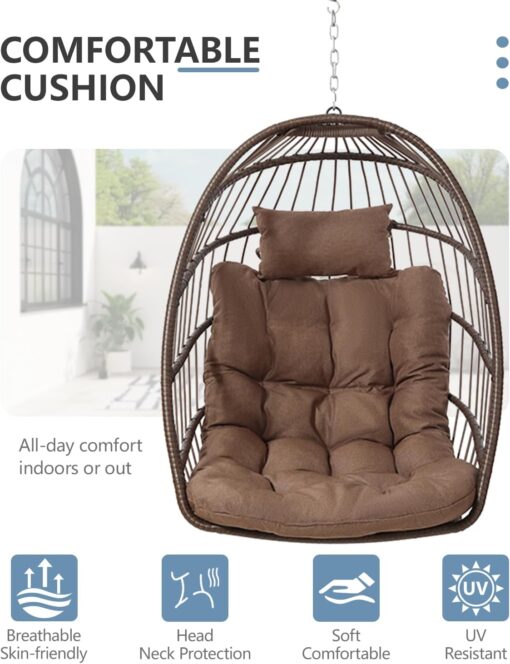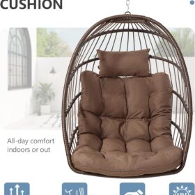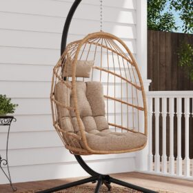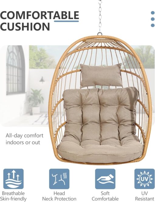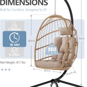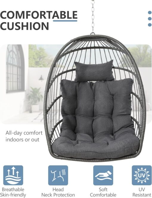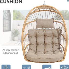 SWITTE Egg Chair Outdoor Indoor Wicker Hanging Egg Swing Chair 350lbs Capacity for Patio