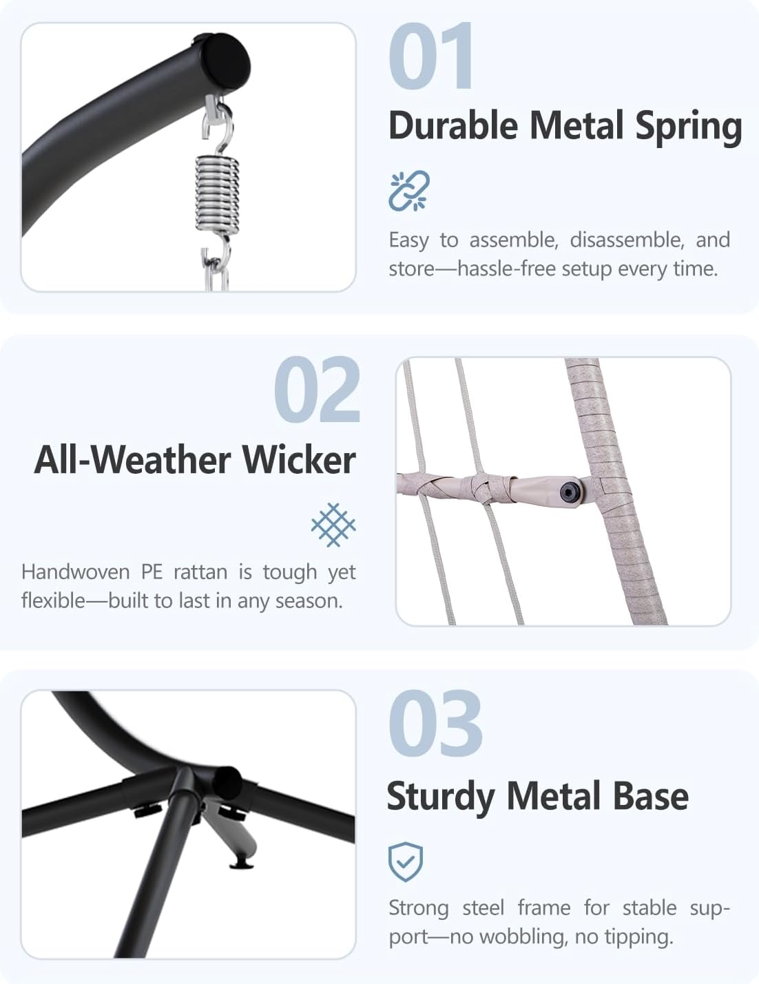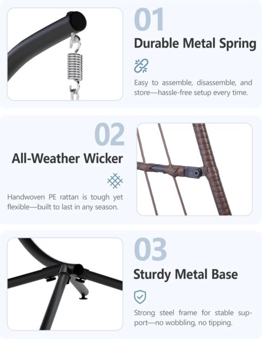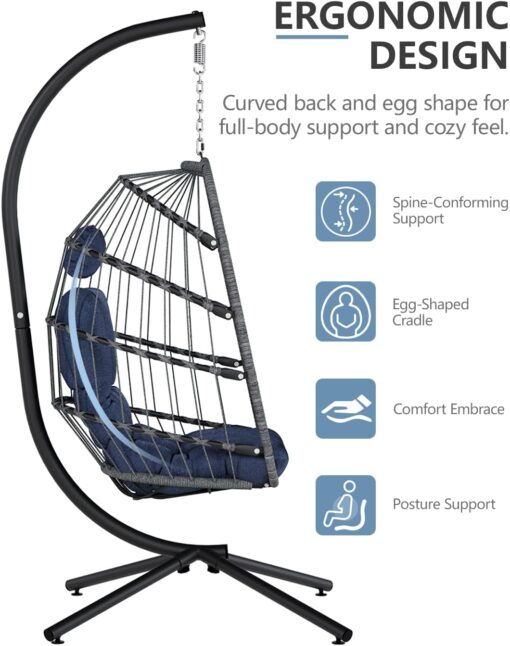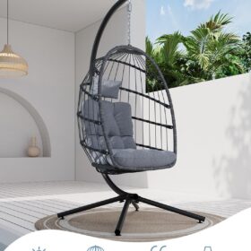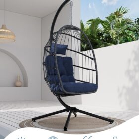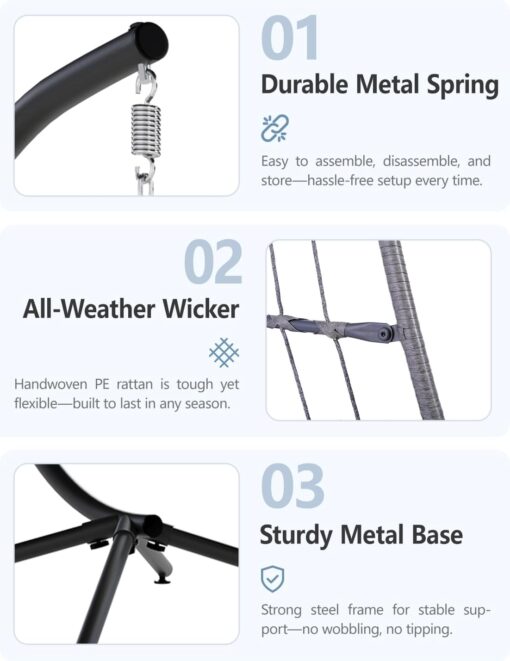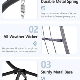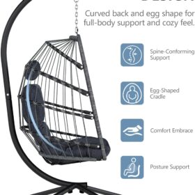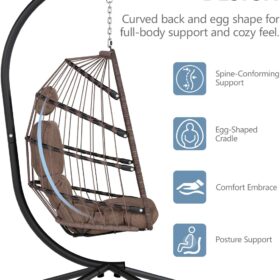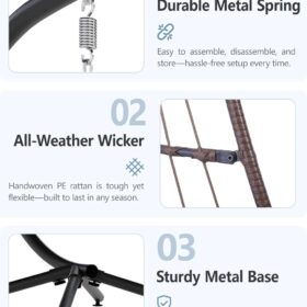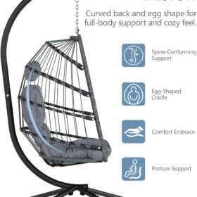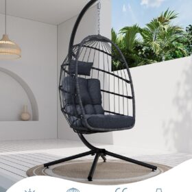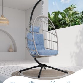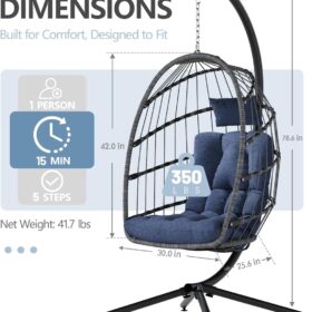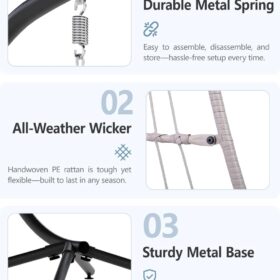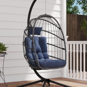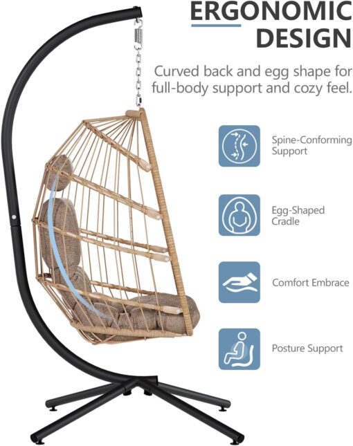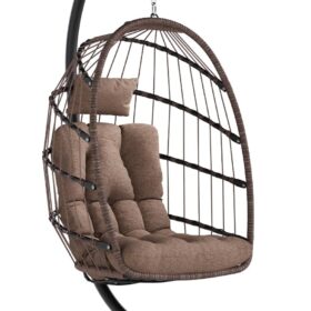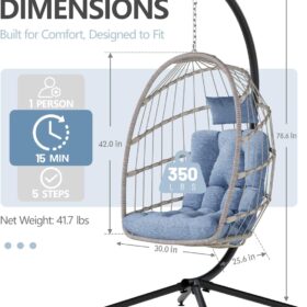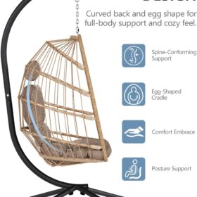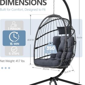 SWITTE Egg Chair Outdoor Indoor Wicker Hanging Egg Swing Chair 350lbs Capacity for Patio