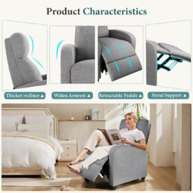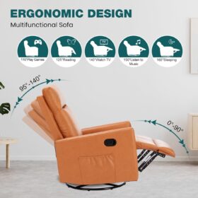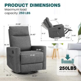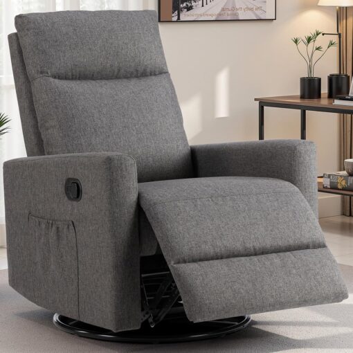 - 【Modern Design to Enhance Any Space】Featuring a sleek and versatile design, this swivel rocker recliner seamlessly fits into any room—be it a nursery, living room, bedroom, or study. Its neutral finish complements various interior styles, adding both elegance and comfort to your home.
