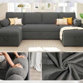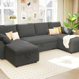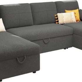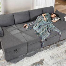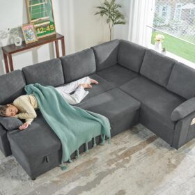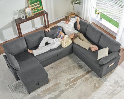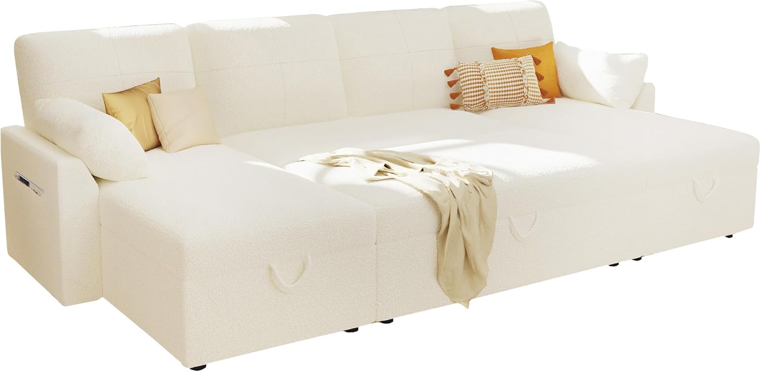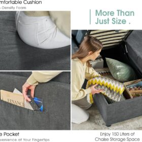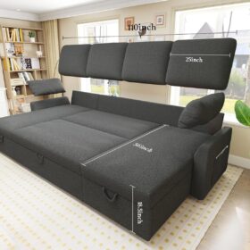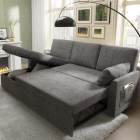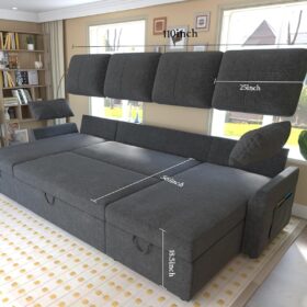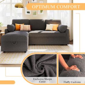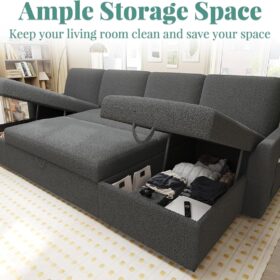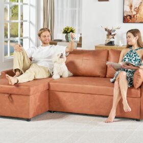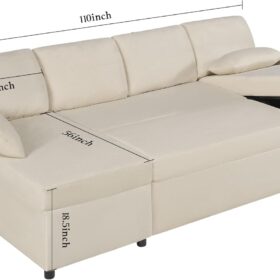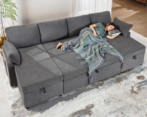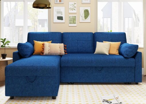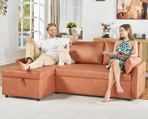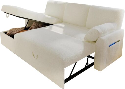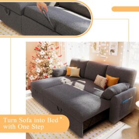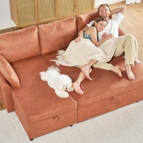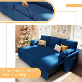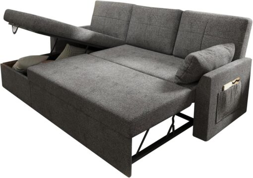 VanAcc Sofa Bed, Sleeper Sofa with Storage Chaise 2 in 1 Pull Out Couch Living Room