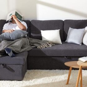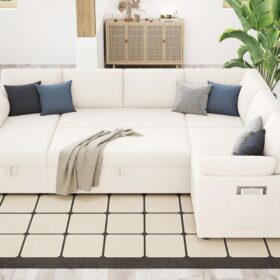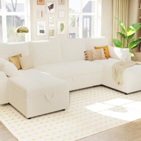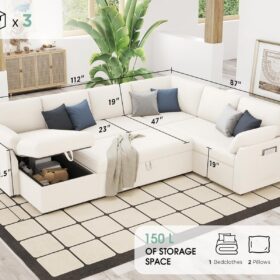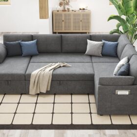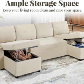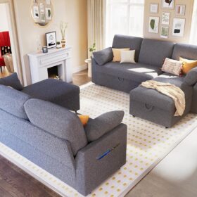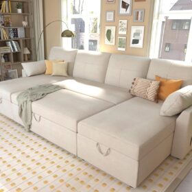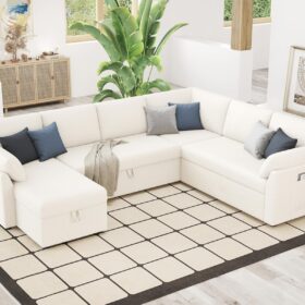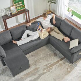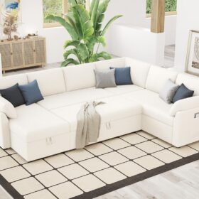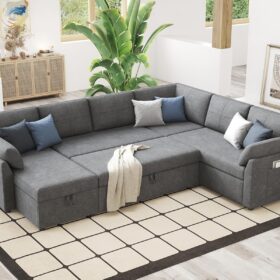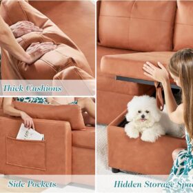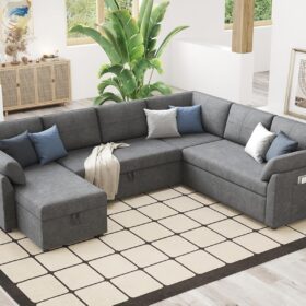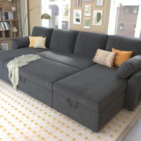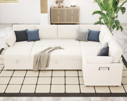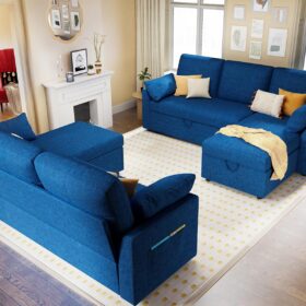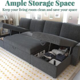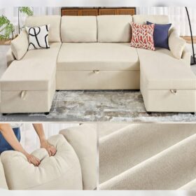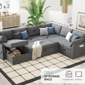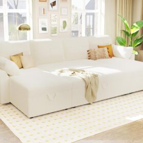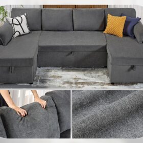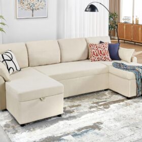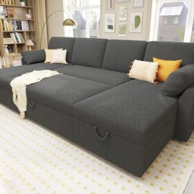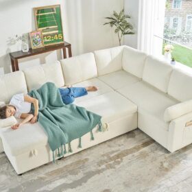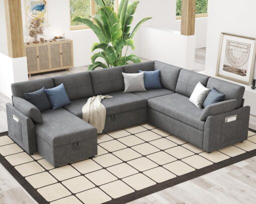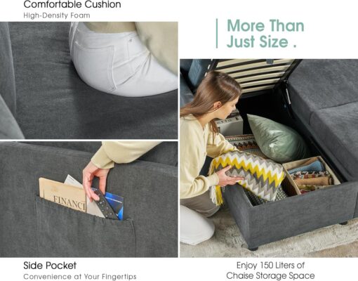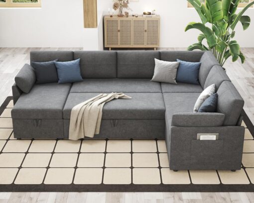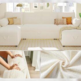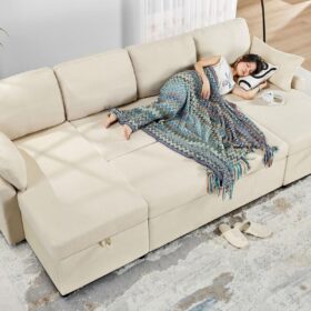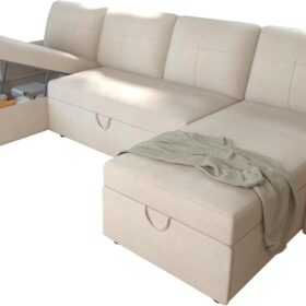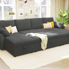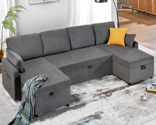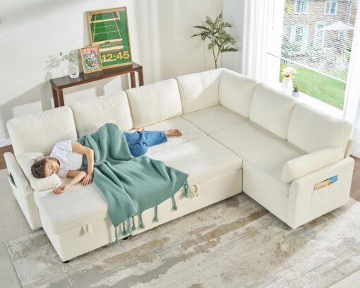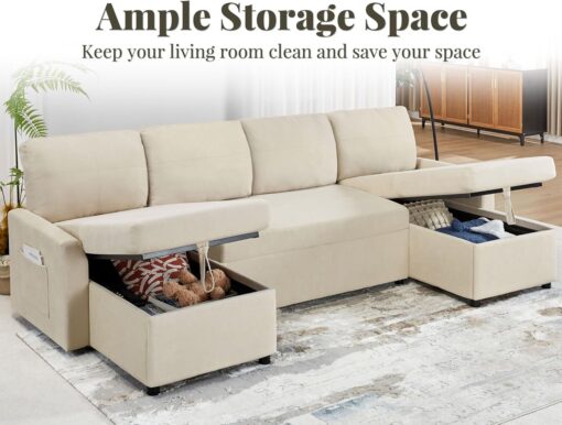 VanAcc Sofa Bed, Sleeper Sofa with Storage Chaise 2 in 1 Pull Out Couch Living Room