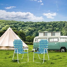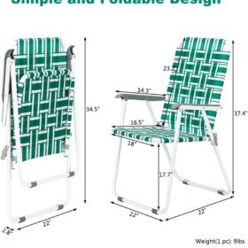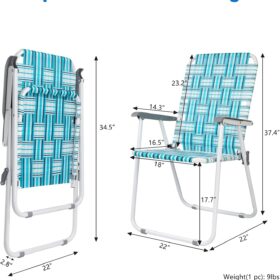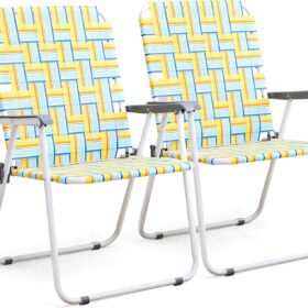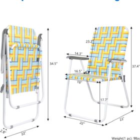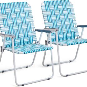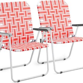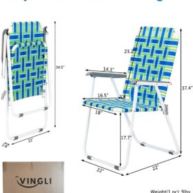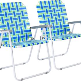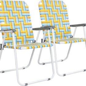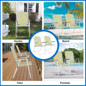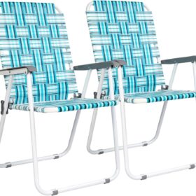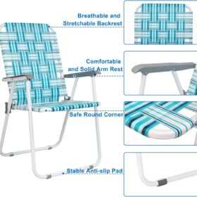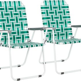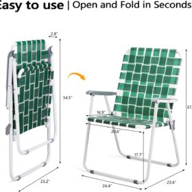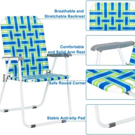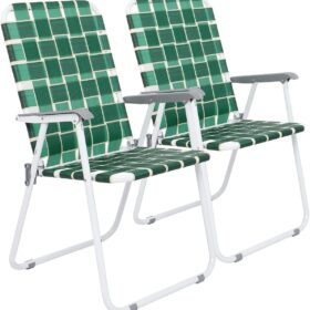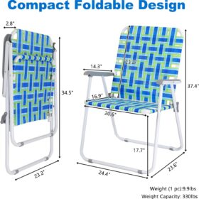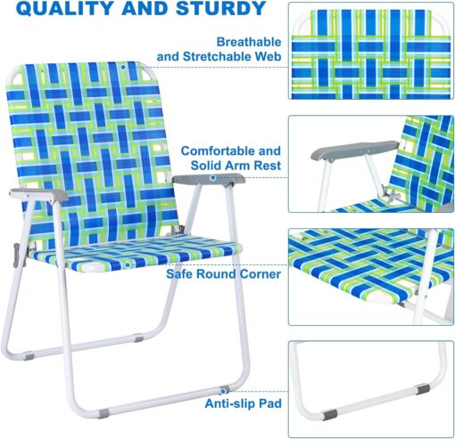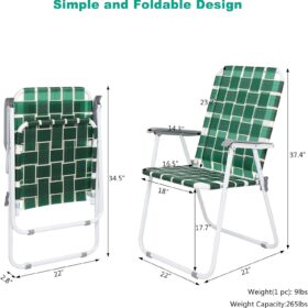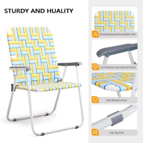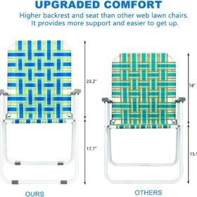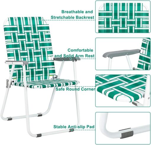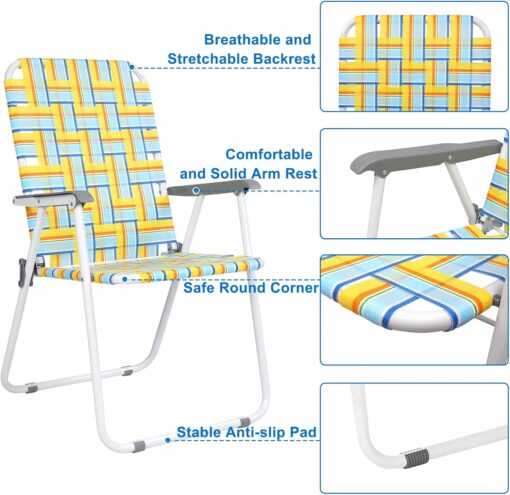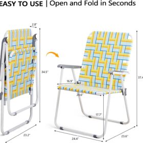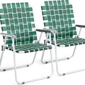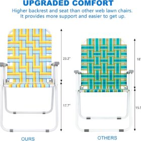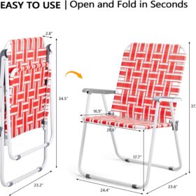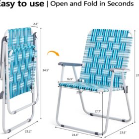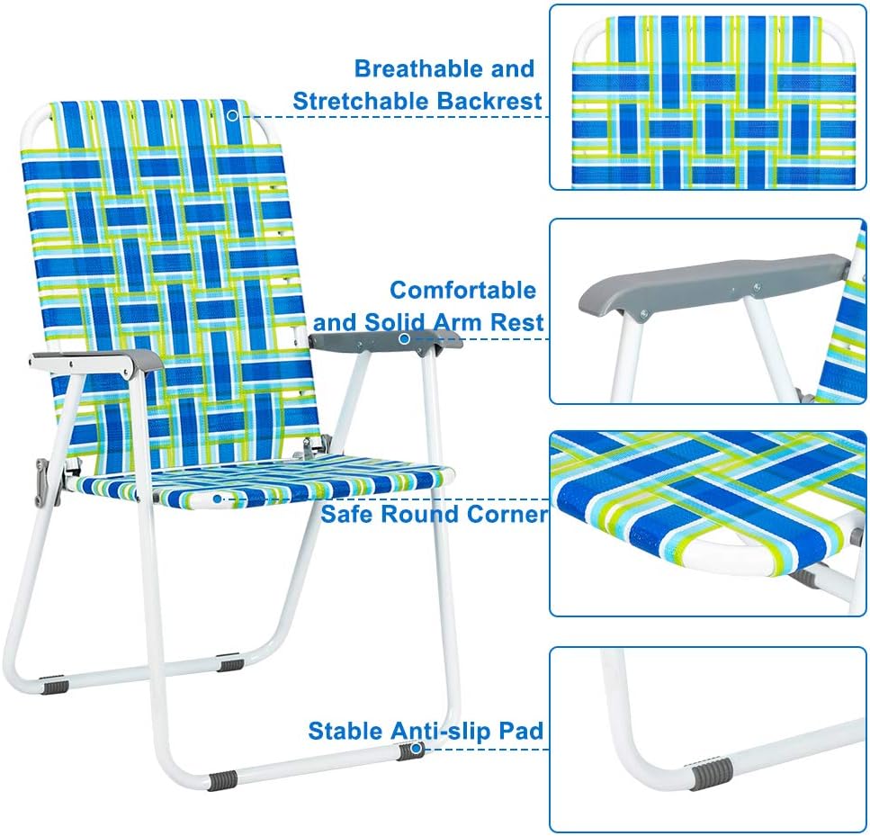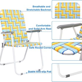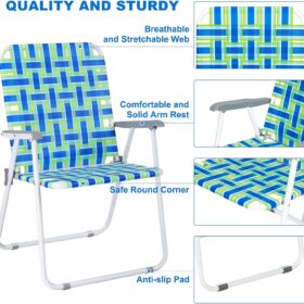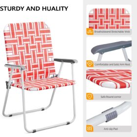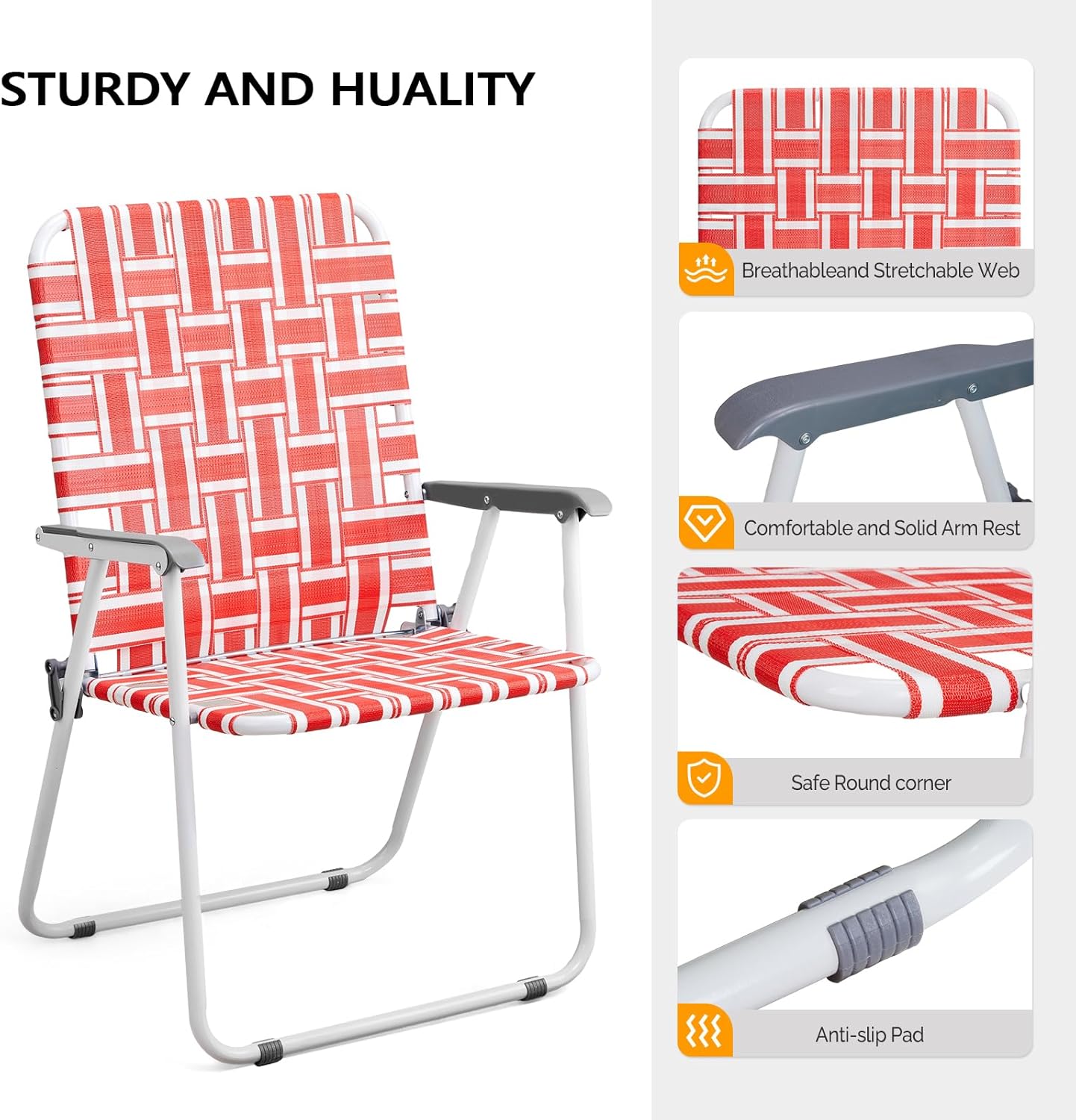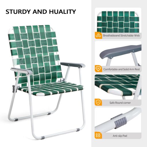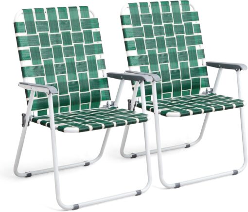 VINGLI Patio Lawn Webbed Folding Chairs Set of 2, Outdoor Beach Portable Lawn Chair Camping Chair Beach Chair