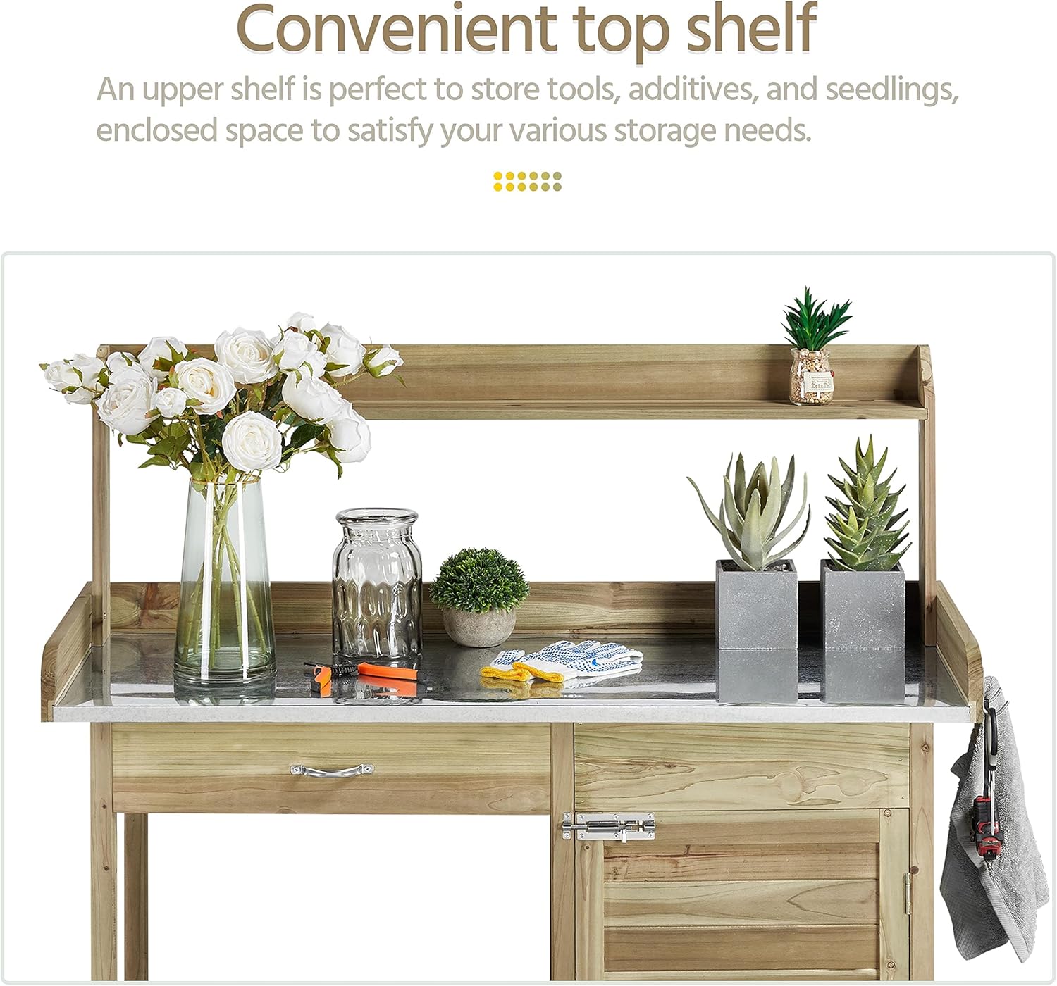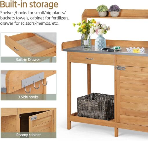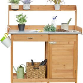 This 100% fir wood gardening console with an unadorned wood look can harmonize with your garden or backyard. The thoughtful functions make it a dedicated gardening assistant