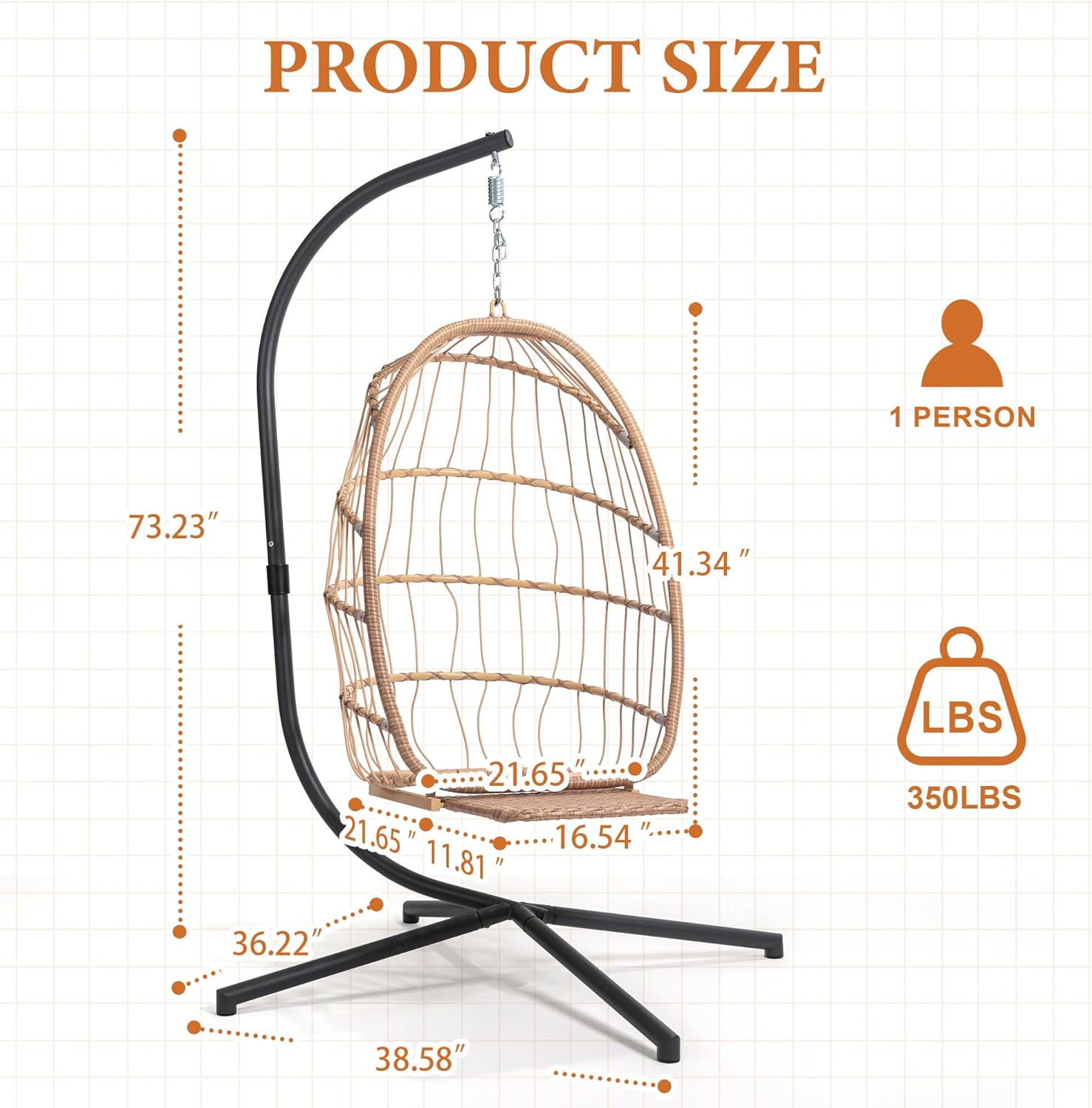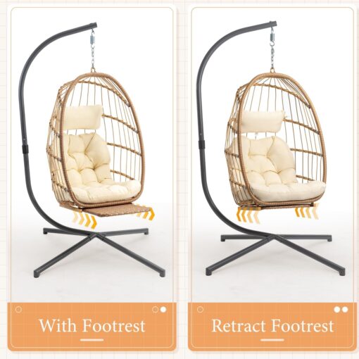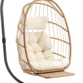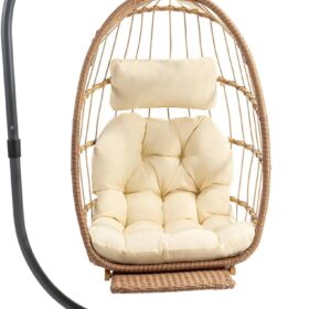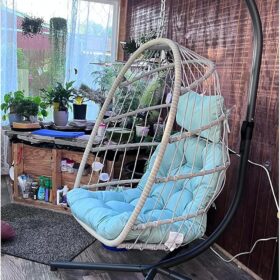 Yechen Indoor Outdoor Egg Hanging Chair Patio Wicker Swing Egg Chair Indoor Swinging Chair