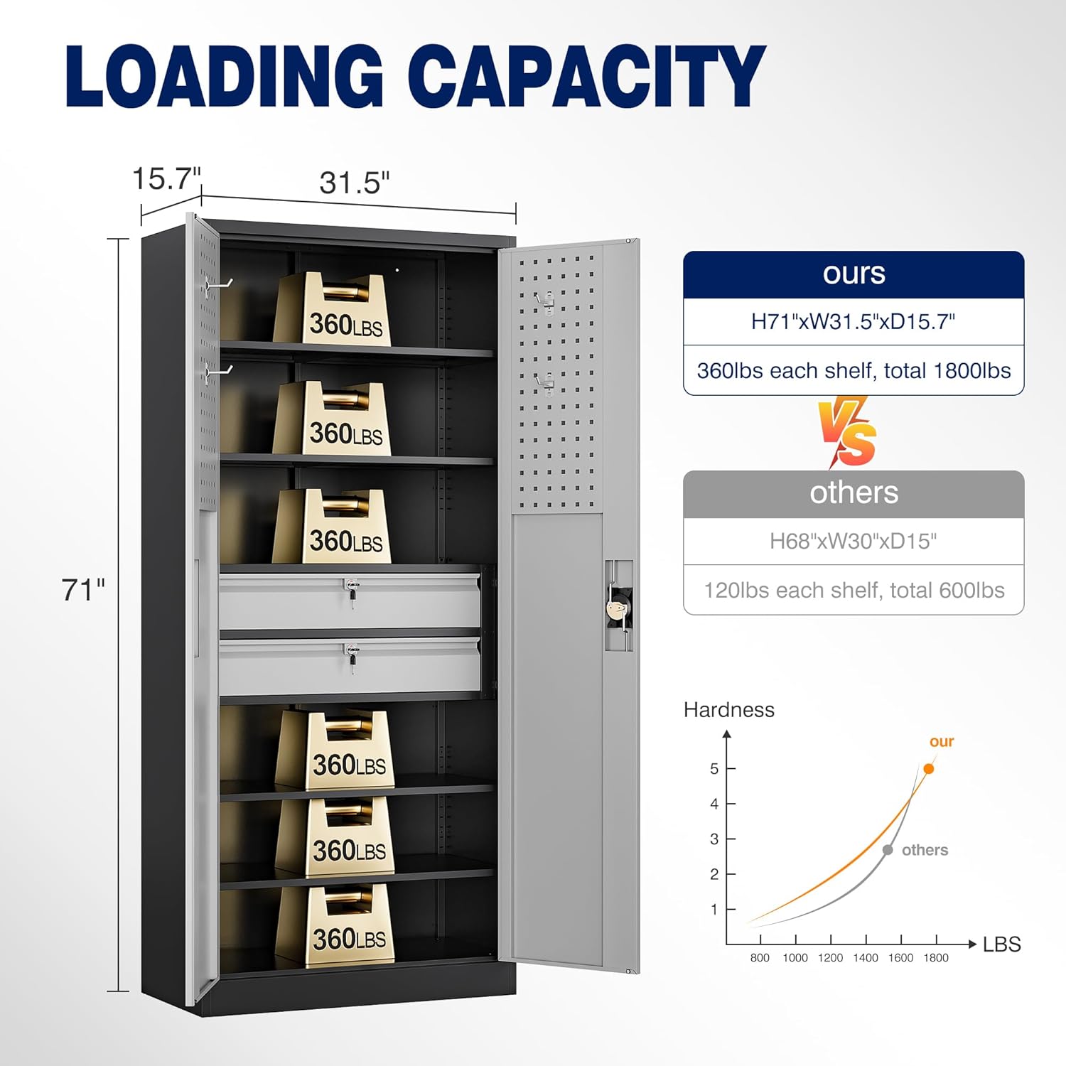 - 『High Quality Metal Material』Yizosh metal storage cabinet is made up of 1.2mm thickened steel, whole-in-one reinforced heavy duty metal frame, load capacity up to 360lbs per shelf-solid and strong. The environmentally powder coated process forms an effective anti-corrosion barrier for the sheet metal.