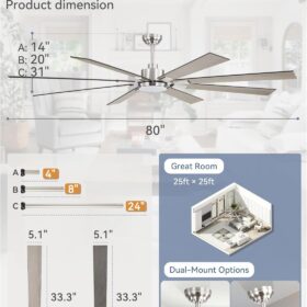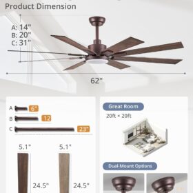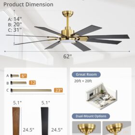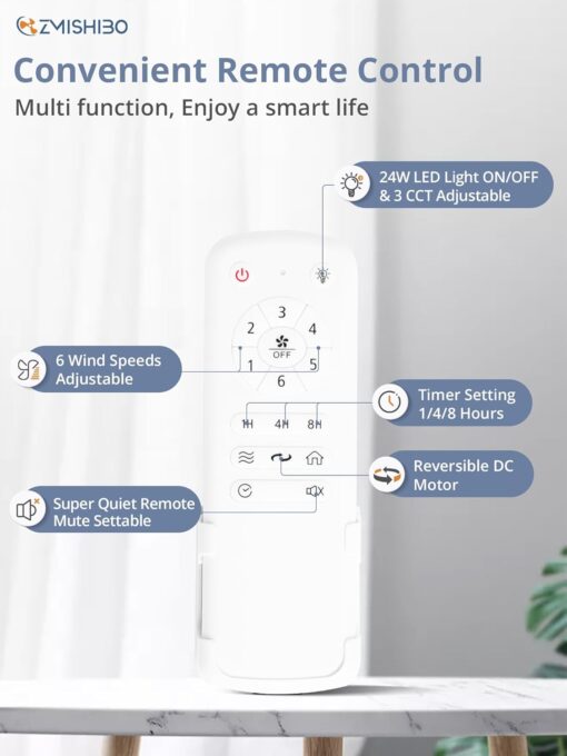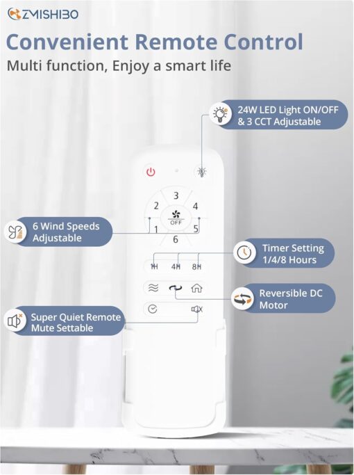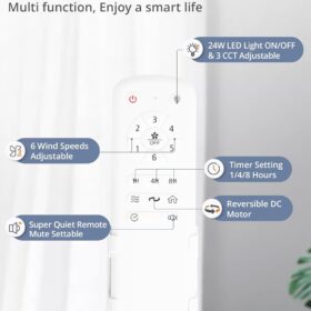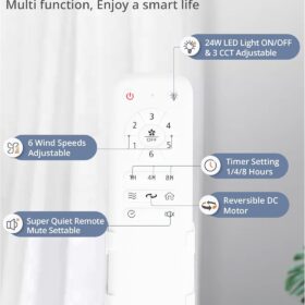 - Convenient Multi-Function Remote: Simplify your life with the included multi-function remote control. Easily adjust the fan and 24W led light settings to your preference. Turn the light/fan on/off, choose from 3 color temperature options�?000K/4500K/6000K), adjust fan rotation direction, select the ideal fan speed, and even set a timer�?/2/4H) �?all at your fingertips