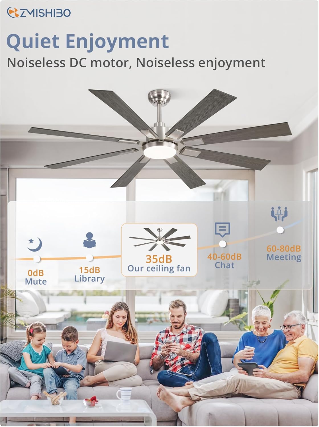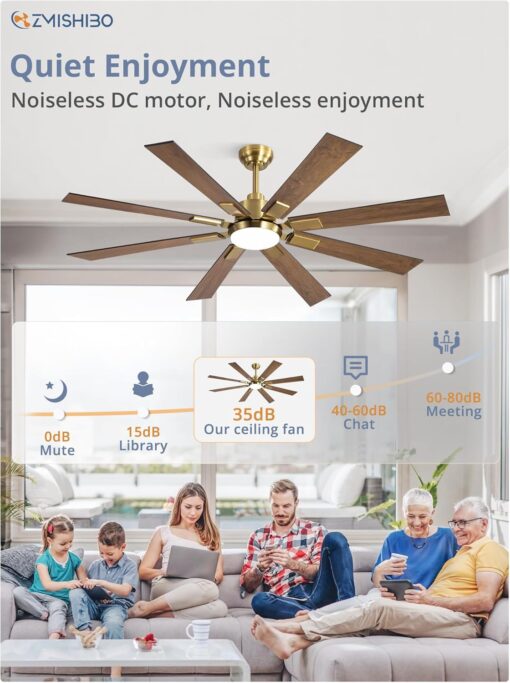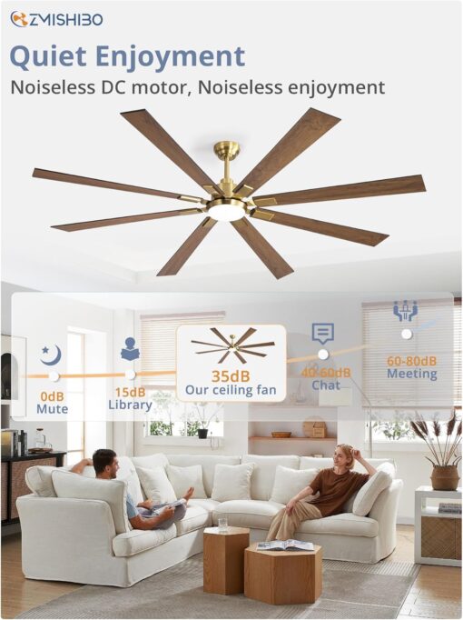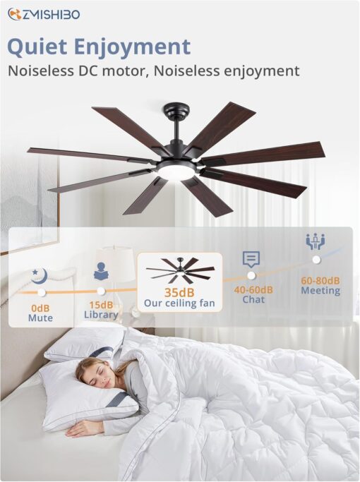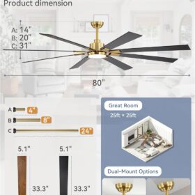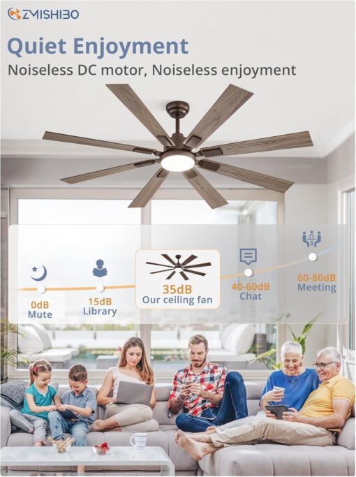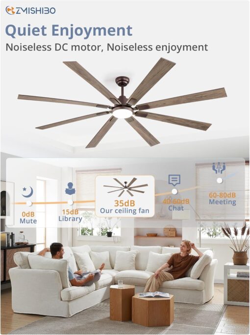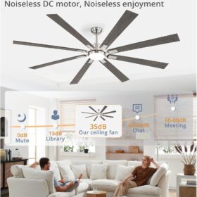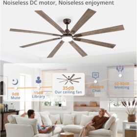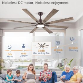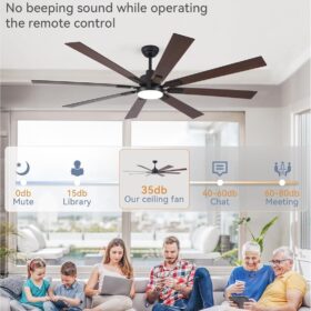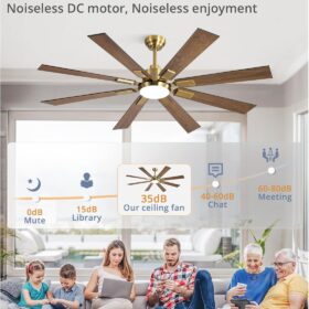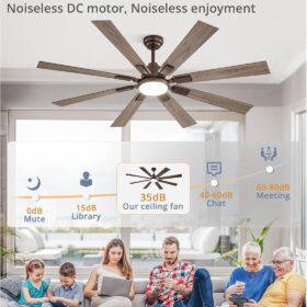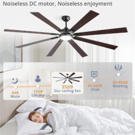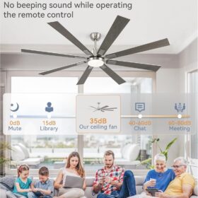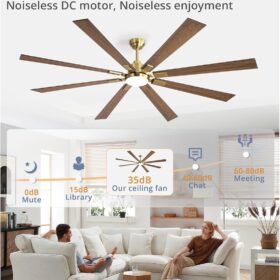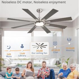 - Silent and Energy-Efficient DC Motor: Experience peaceful tranquility with the industrial ceiling fan’s noiseless DC motor, perfect for homes with seniors and children. Operating at just 35 dB, it emits a soft hum like fluttering butterfly wings (30 dB). Moreover, the energy-saving DC motor ensures eco-friendly operation, providing 65% more energy efficiency compared to traditional AC motors. Enjoy top-notch performance while saving energy