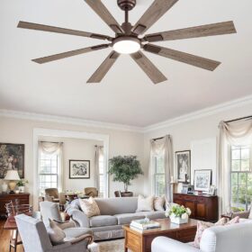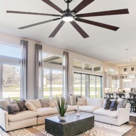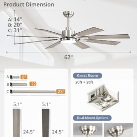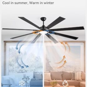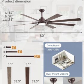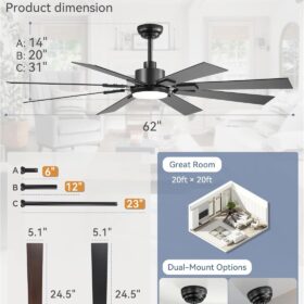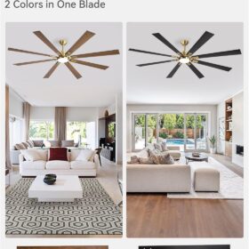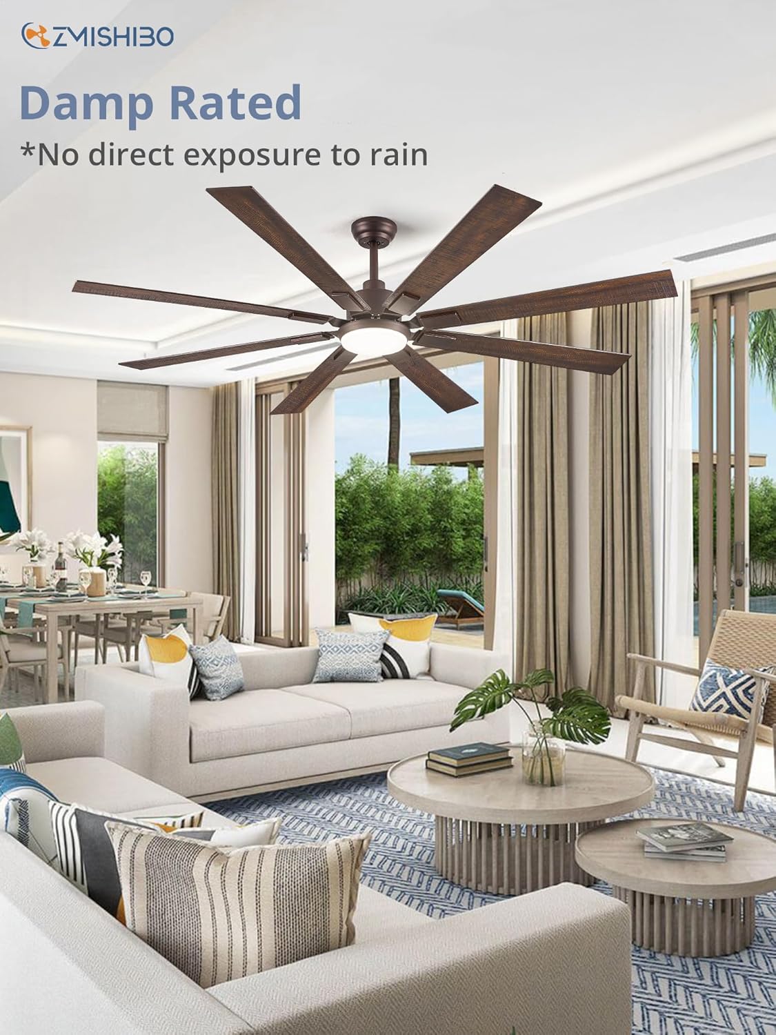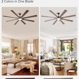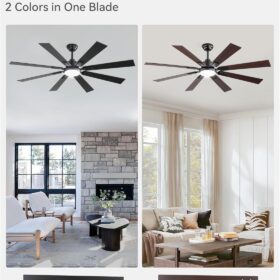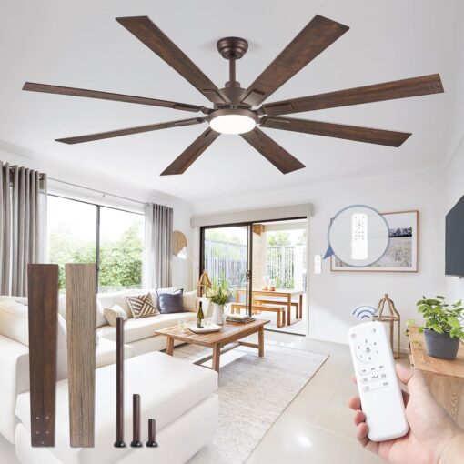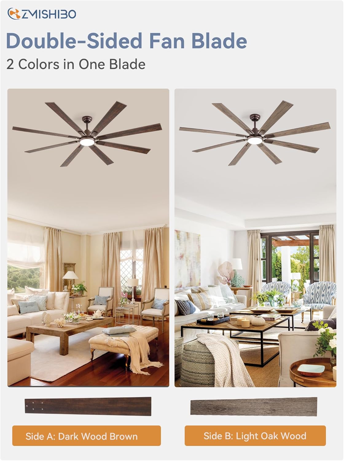 - 72 Inch Ceiling Fan: This large ceiling fan includes 4�? 8�? and 24�?down rods, making it a versatile choice for both low and high ceilings (12-32 inches high). Its stylish fan blades feature a sleek dual-color design in black and walnut, perfectly blending industrial and farmhouse styles. With 8 fan blades, the big ceiling fan offers a cost-effective and eye-catching solution, replacing the need for multiple smaller ceiling fans. Ideal for living room, garage, barn, or covered patio