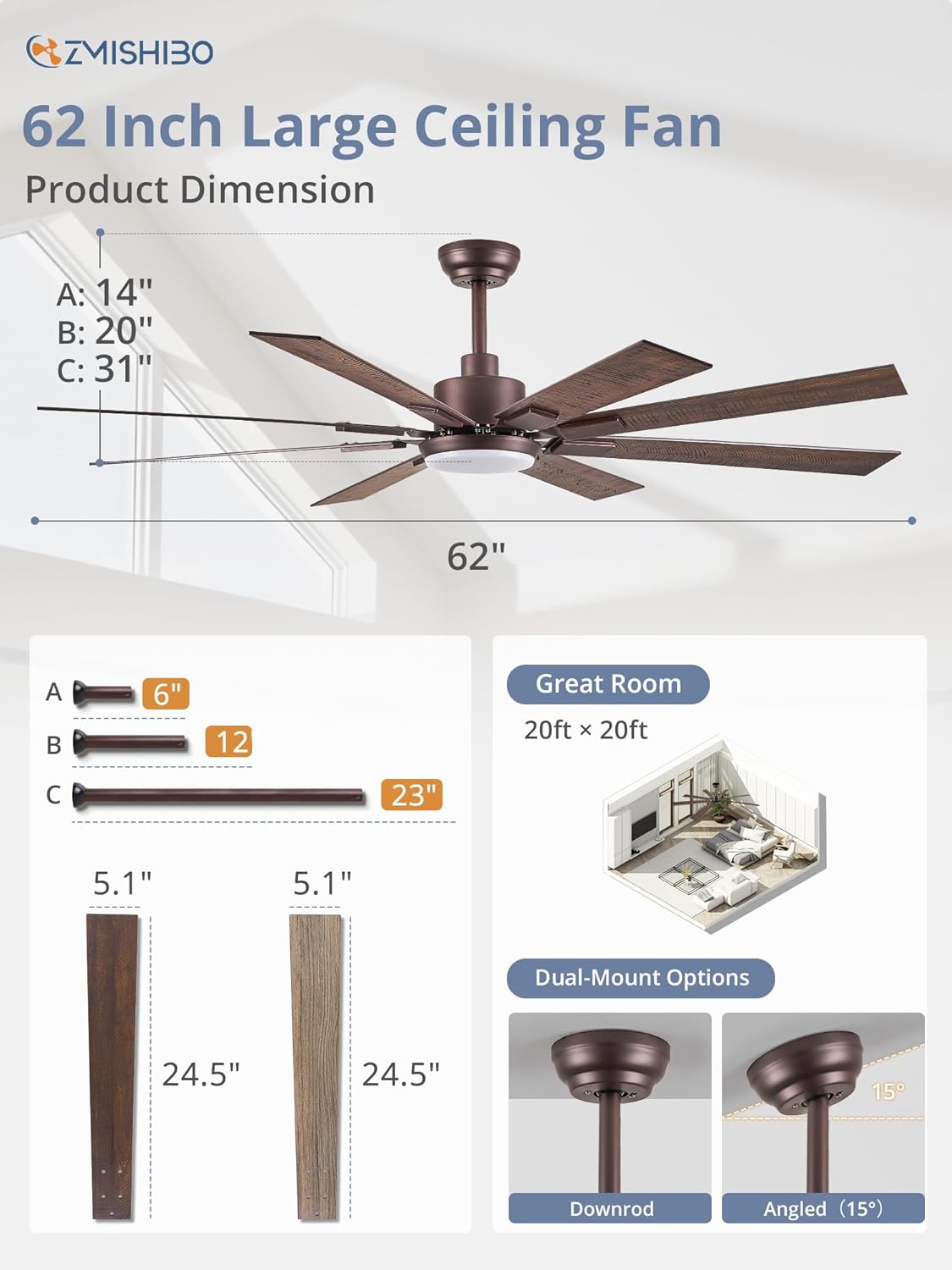 - Outstanding Customer Support: At ZMISHIBO we prioritize your 100% shopping satisfaction. This LED Ceiling Fan includes clear installation instructions and is backed by a 2-year customer support. If you have any questions or concerns. We’re here to help