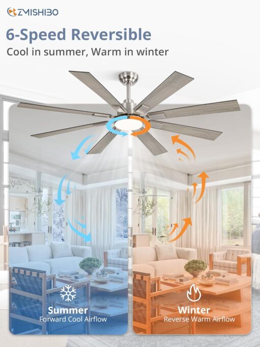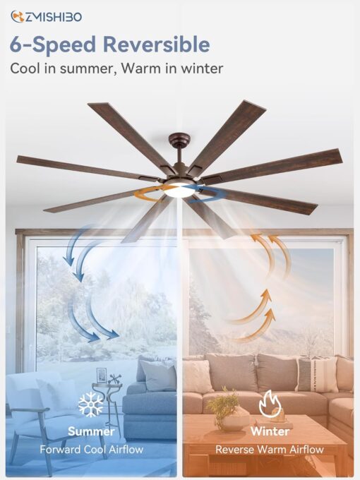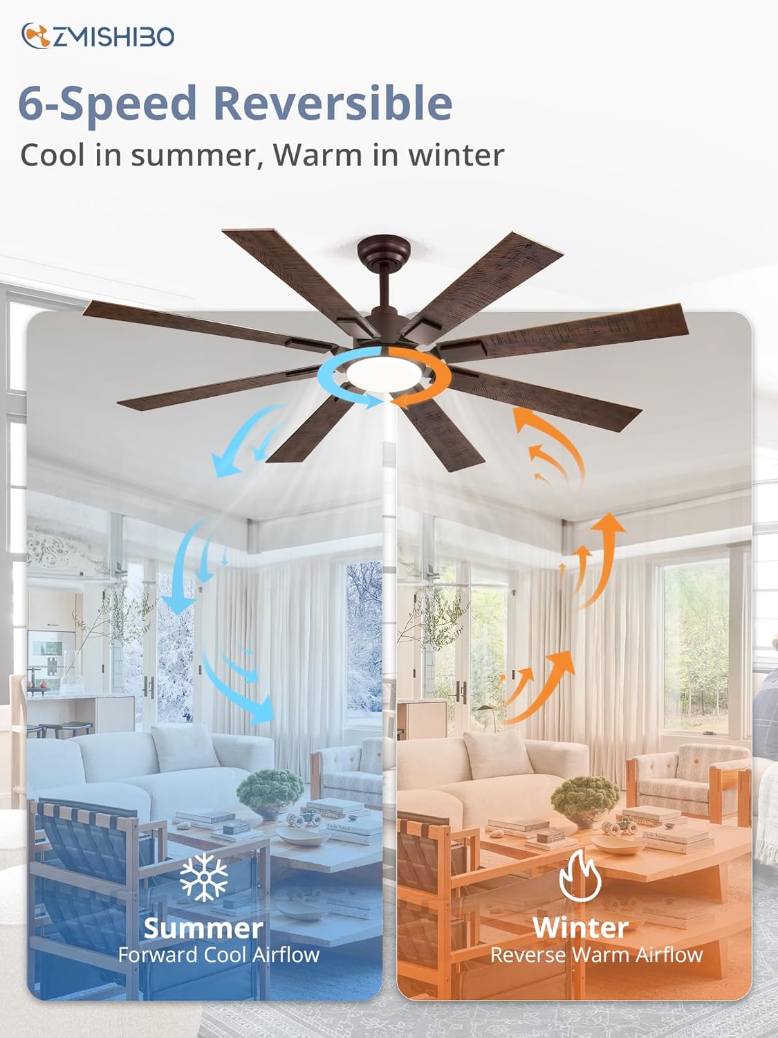 - Reversible 6-Speed Adjustable Fan: The ceiling fan takes control of your comfort with 6 adjustable fan speeds, providing the perfect breeze for any occasion. Enjoy a gentle airflow, natural wind, or powerful wind with the handy remote control. In summer, go counterclockwise for refreshing cool air, and in colder seasons, switch to clockwise for a cozy feel. Complete control and comfort all year round
